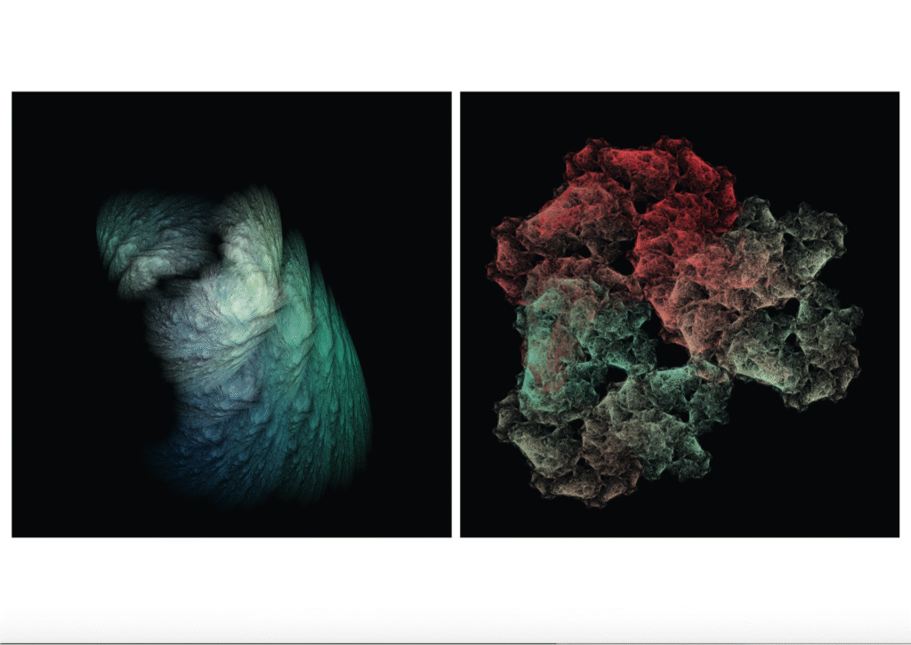 DIE GANZE WAHRHEIT Fraktale. Selbstähnlichkeit über Skalen hinweg. Vorhersehbare, gleichzeitig unendlich verschiedene Muster, die sich vor aller Augen versteckt überla- gern. Komplexität, die aus einfachen deterministischen Regeln entsteht. Die Sammlung «Die ganze Wahr- heit» ist das Ergebnis meiner ästhetischen Reise der Erforschung eines einzelnen iterierten Funktionen- systems: Dem Chaosspiel, in welchem jeder Schritt des generativen Prozesses auf der vorhergehenden Version seiner selbst beruht. Algebra als Medium. Vek- toren in einem Koordinatensystem erzeugen durch rekursive Selbstwiederholungen die Illusion von Licht, Schatten und Körpern. Alles im Kopf des Betrachters. Text: Alberto Bustillos