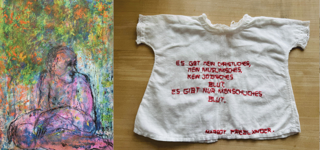 KATHRIN STALDER 1949 in Basel geboren, lebt und arbeitet in Basel. In ihren bestickten Hemden verbindet sich das Politische mit dem Menschlichen. Die zarten Stoffe tragen Worte, die von Mut, Mitgefühl und Verantwortung sprechen. Sie laden dazu ein, still zu werden, zu lesen, zu fühlen. Stalder arbeitet mit gebrauchten Textilien – Trägern von Erinnerungen – und verwandelt sie in Botschaften über Demokratie und Menschenwürde. Jedes Hemd wird zu einem stillen Zeugnis, das berührt, ohne laut zu sein.